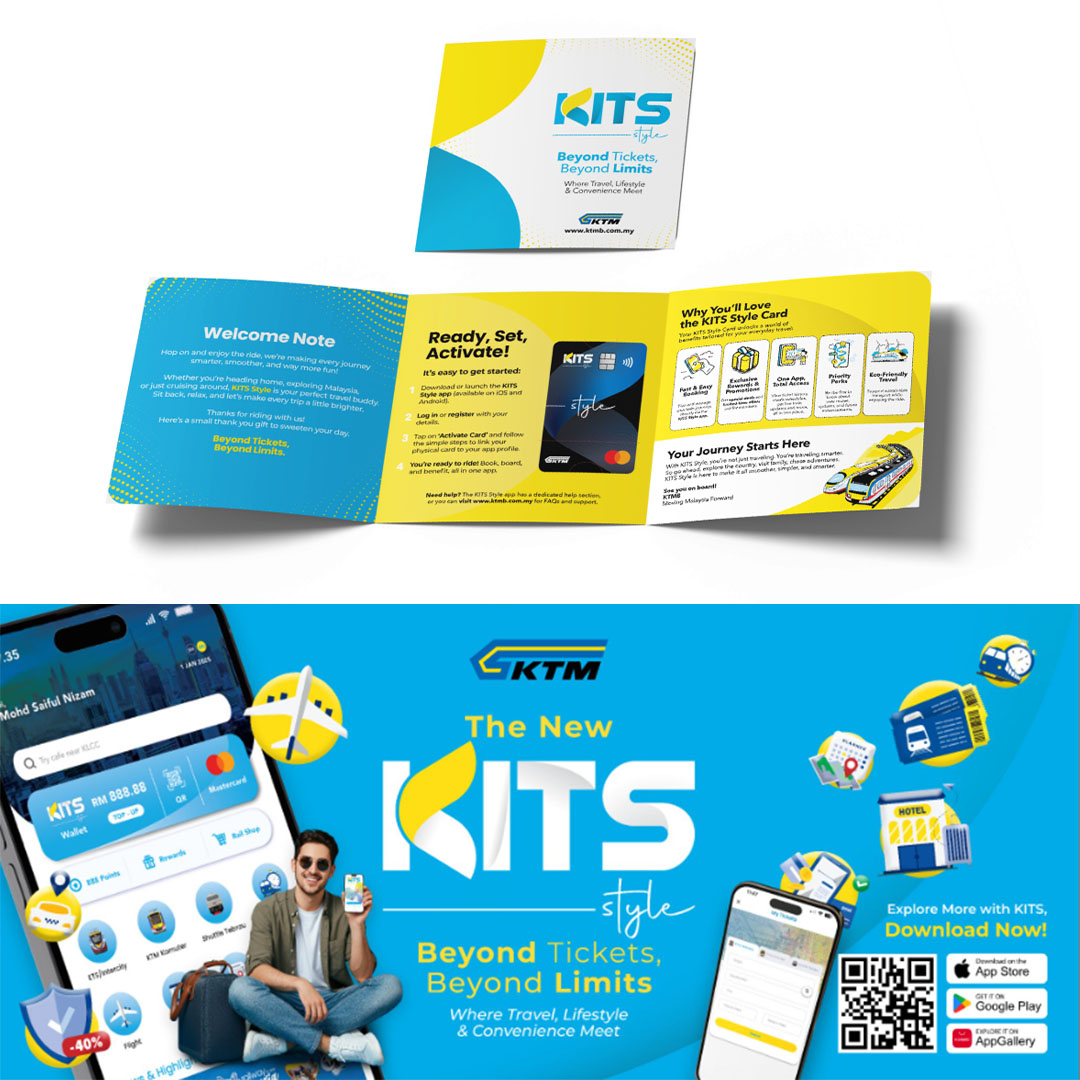 Melalui kerjasama ini, syarikat kami menyokong usaha KTMB dalam memperkukuh komunikasi visual dan pengalaman jenama mereka. Skop perkhidmatan yang disediakan merangkumi reka bentuk jenama, bahan kolateral, pembangunan aplikasi, reka bentuk acara dan kempen, barangan cenderamata (merchandise), serta pelbagai keperluan kreatif lain. Setiap hasil direka dengan teliti bagi memastikan identiti KTMB kekal konsisten, moden dan dekat dengan penumpang. Selain itu, kami turut menghasilkan kandungan video yang digunakan sebagai medium komunikasi dan sokongan visual bagi acara serta inisiatif berkaitan KTMB.